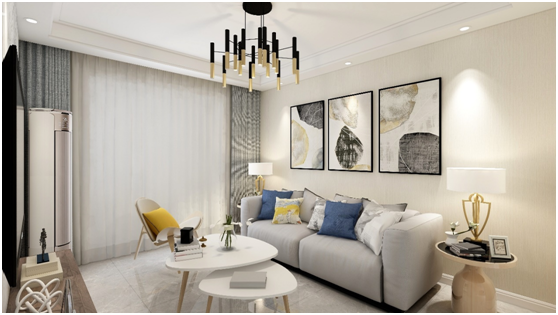 這套現(xiàn)代簡約的客廳設(shè)計以淺色為主色,再運用暖色和灰色的搭配,讓客廳充滿現(xiàn)代的氣息,十分的簡潔時尚。慵懶的沙發(fā)讓人能夠感覺到非常舒適和放松的感覺。背景墻用的淺色大理石磚和硬包搭配既豐富了整體材質(zhì),又讓人感覺到非常大氣,點綴上黑色不銹鋼又與角幾餐桌顏色搭上顯得比較整體。