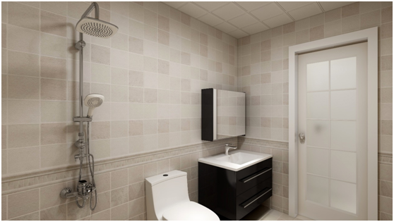 此衛(wèi)生間進(jìn)門右手邊為浴室柜,鏡子背靠東側(cè),鏡子沒有直對門和坐便,因為從風(fēng)水上講,馬桶為污穢之物,不能去“照鏡子”。雖然衛(wèi)生間空間比較小,但是整個衛(wèi)生間的功能并沒有減少,浴室柜的簡單儲物,洗衣機(jī)上方的空間利用,單獨的淋浴設(shè)計做到了干濕分區(qū),使得衛(wèi)生間充分的利用的空間。墻面采用300*300的小磚鋪貼,使得整體墻面比較豐富,不是那么單一。