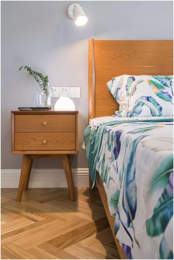 △高腳床頭柜,既有很好的儲物、置物功能,又方便打掃。床頭柜的小燈補(bǔ)充照明,也便于隨時(shí)開關(guān)。